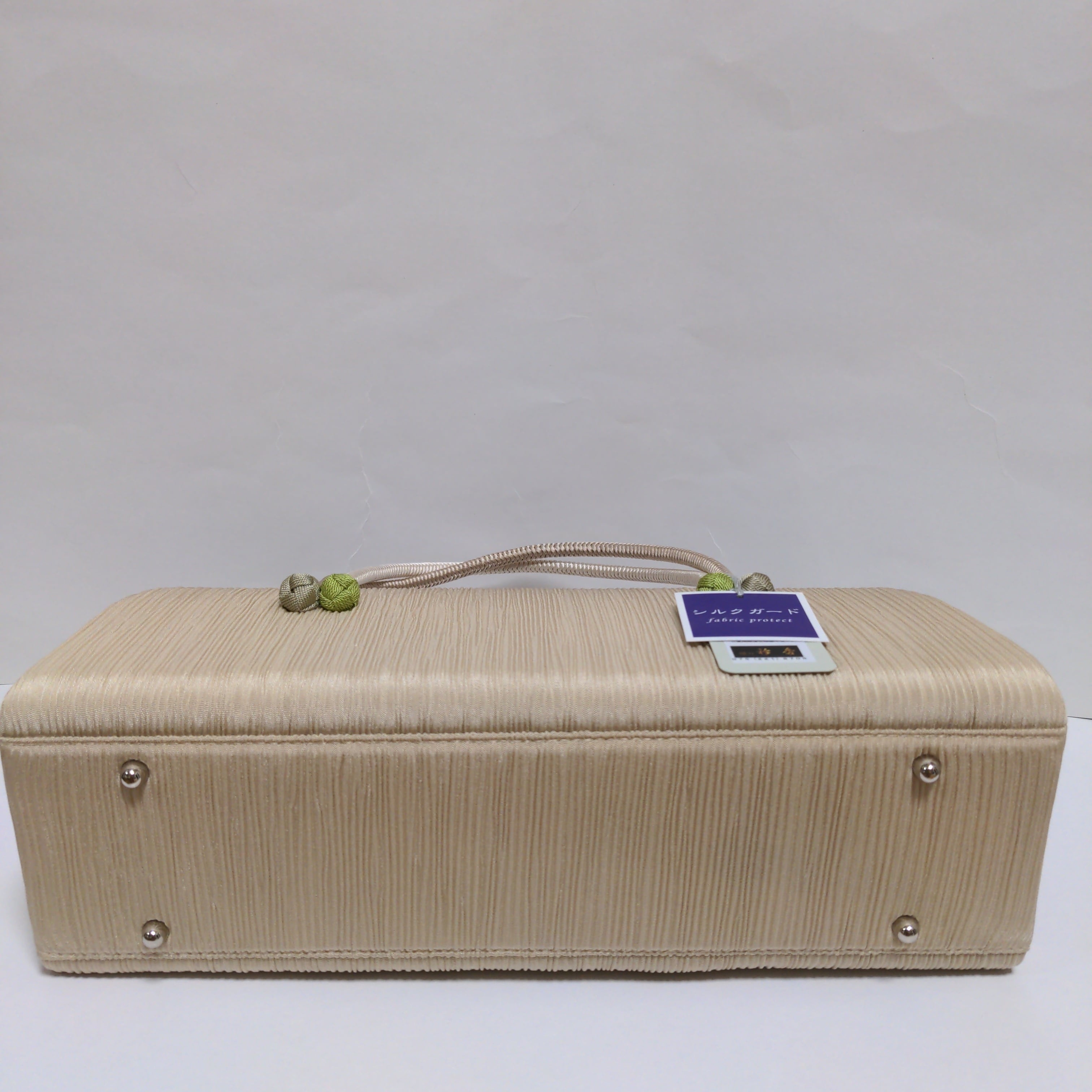このバックは、バックの底面に底鋲が付いてますので、床にバックを置いてもバックの底面が直接床に付かないようになっております。