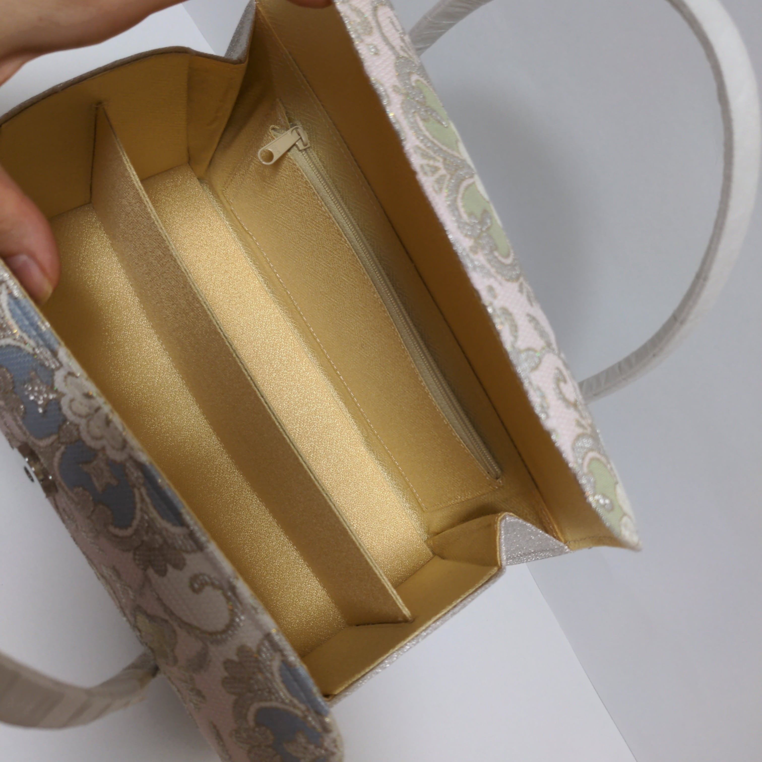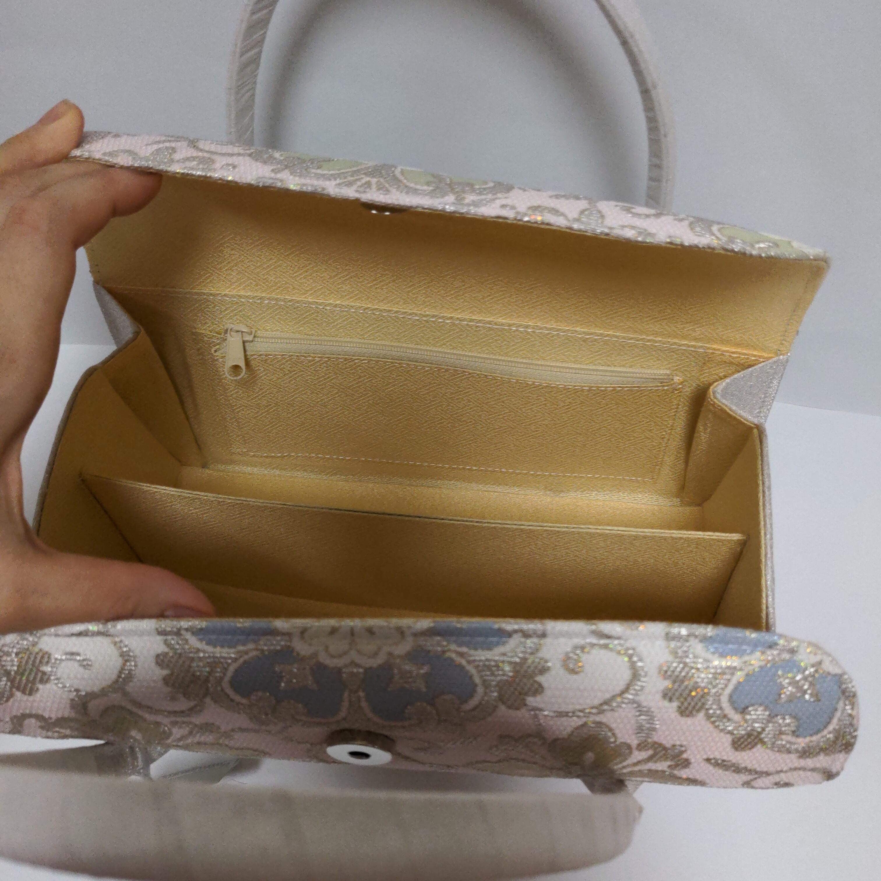 こちらは、お着物の時にお使いになる和装バックで、利休バック、あおりバックとも言います。