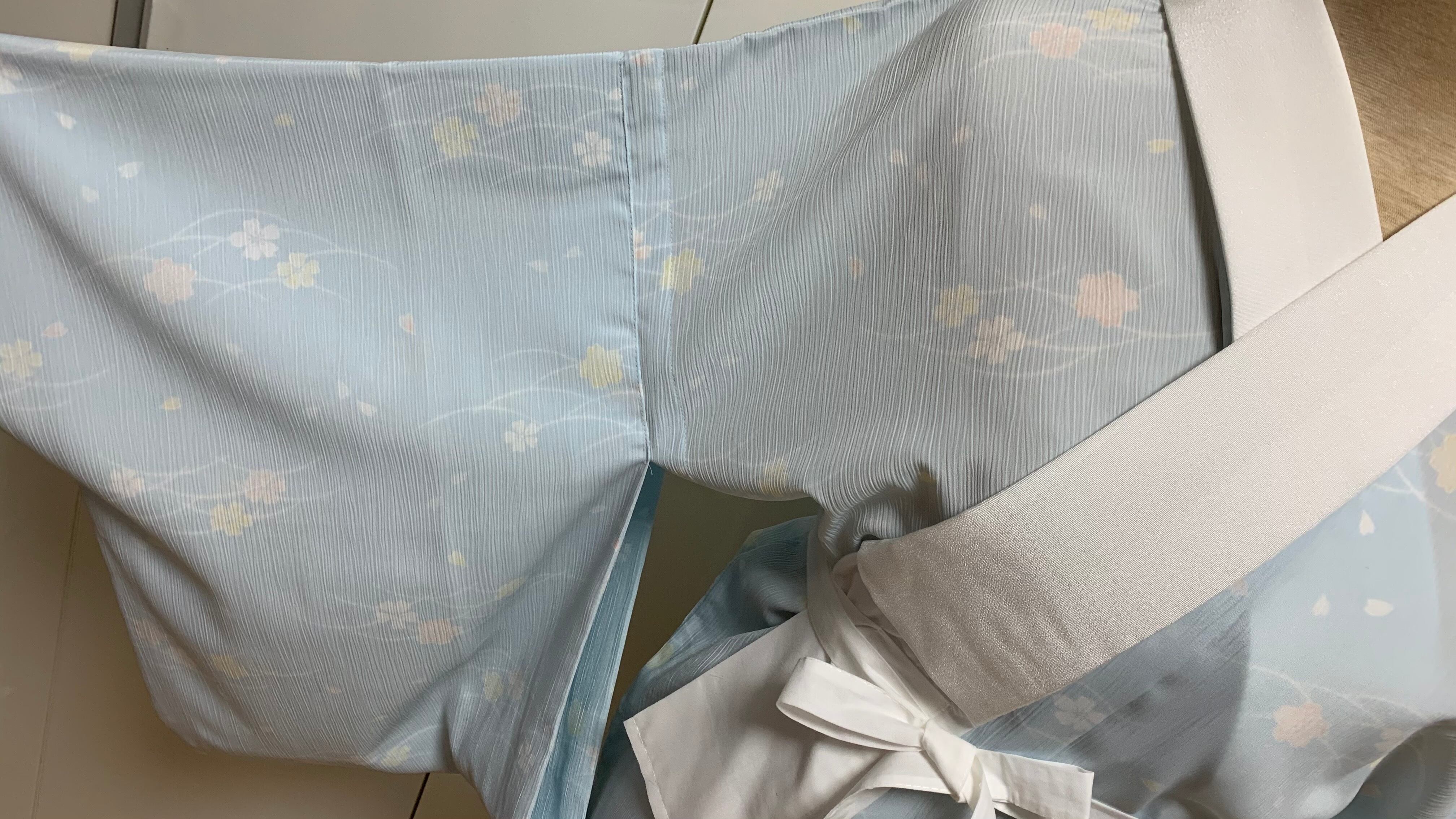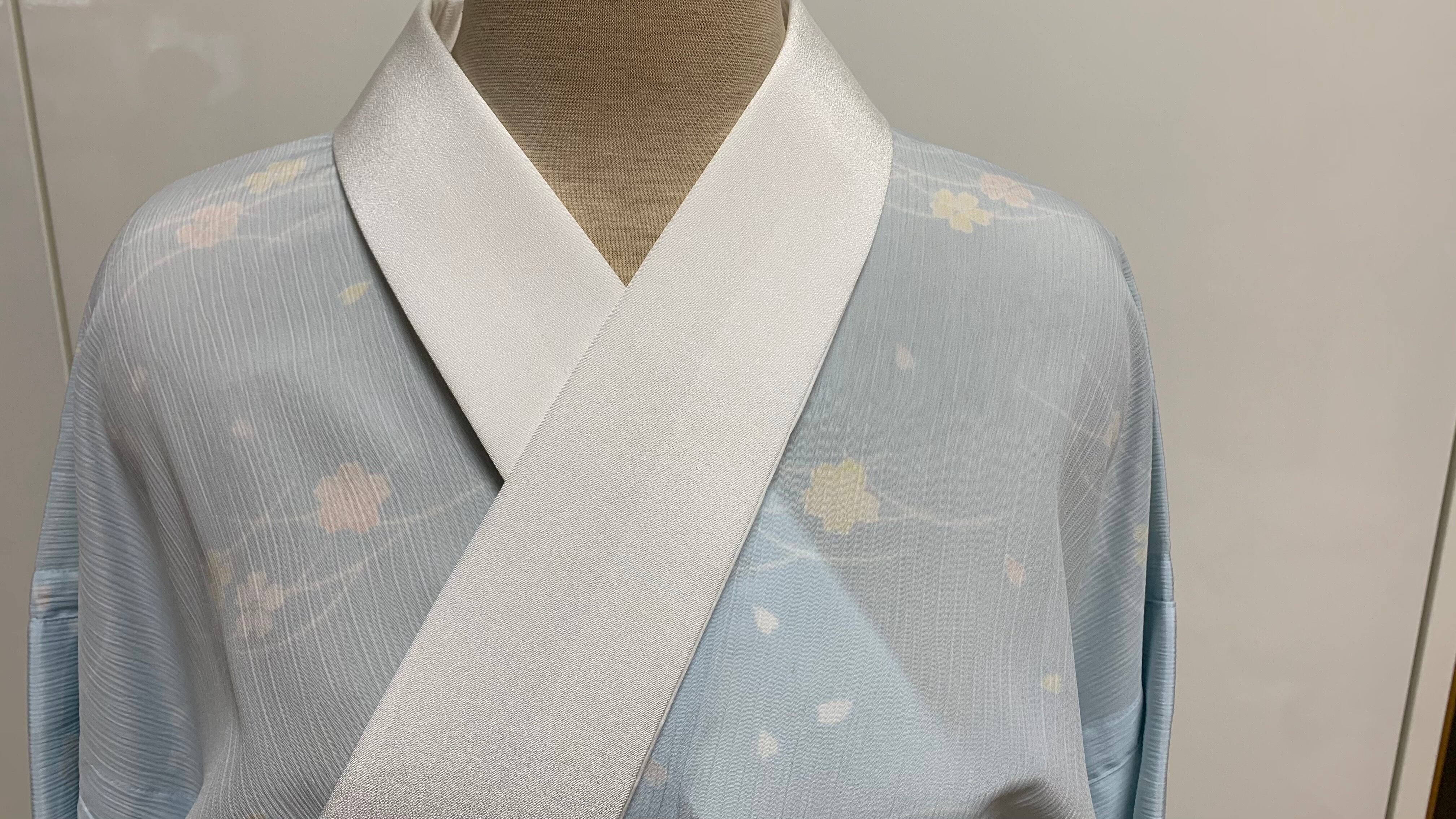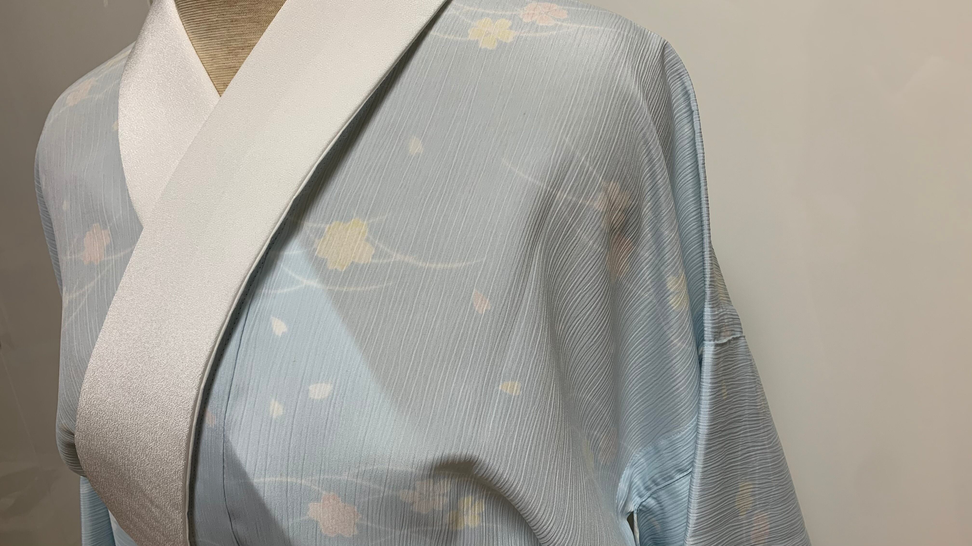 こちらの襦袢はすでにお仕立て上がり品のため、商品到着後すぐに着用可能です。衿はファスナー加工の為、脱着がファスナーで取り外しでき、大変便利です。