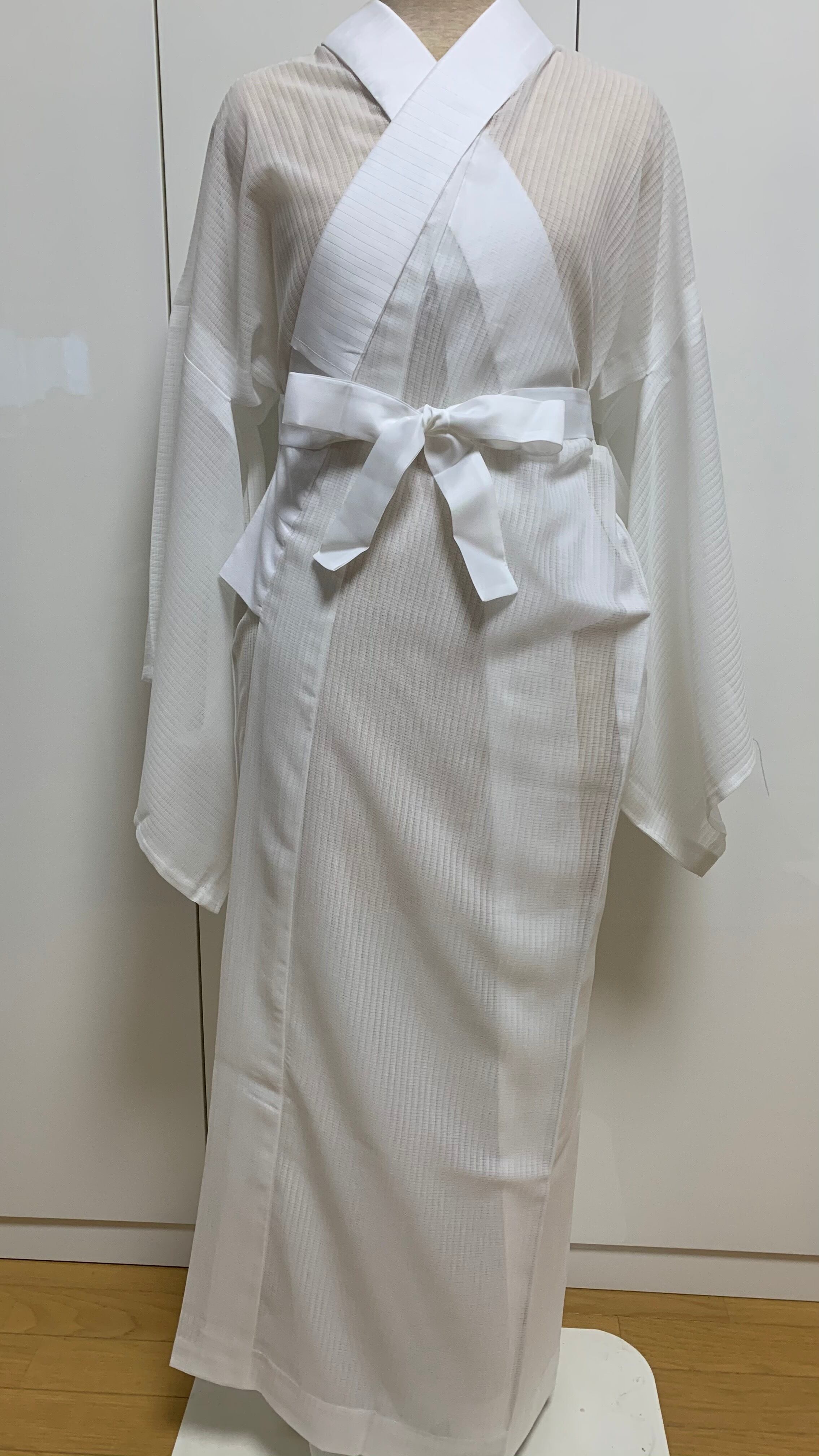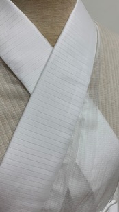 こちらの襦袢はすでにお仕立て上がり品のため、商品到着後すぐに着用可能です。生地は紗なので、夏物です。ですが、最近は、夏でなくても暑い時期にはこの生地を着用する方も多いです。